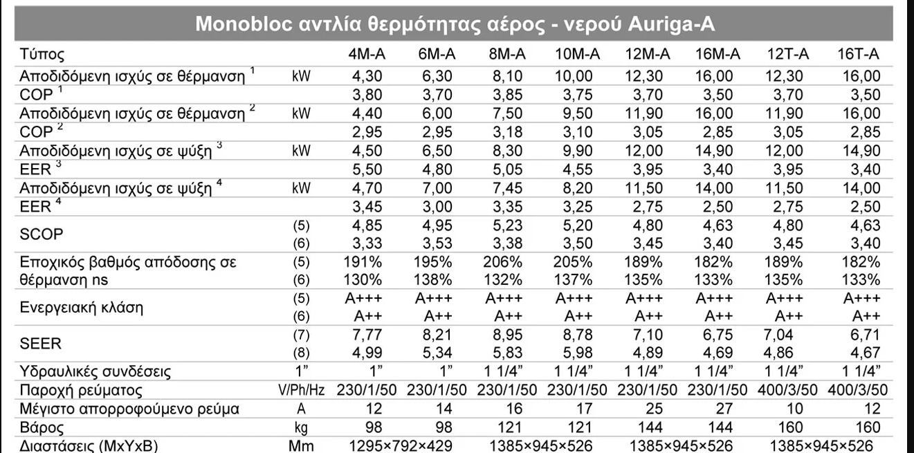 Δοχείο διαστολής 8lt (σε όλα τα μοντέλα), διακόπτη ροής (flow switch), βαλβίδα ασφαλείας 3 bar, κυκλοφορητή υψηλού μανομετρικού.