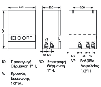Διακόπτες επιλογής ισχύος λειτουργίας 0% - 50%- 100% και ενδεικτικές λυχνίες λειτουργίας.