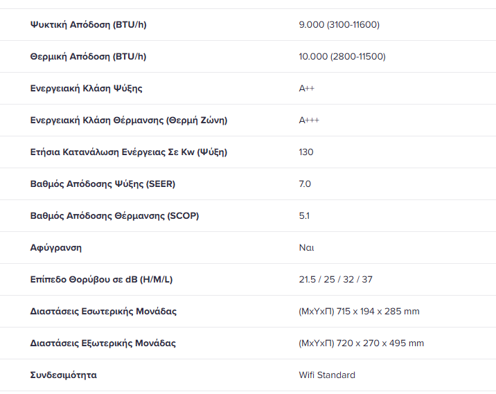 Wi-Fi Standard Δυνατότητα απομακρυσμένου ελέγχου μέσω της εφαρμογής Comfort Living